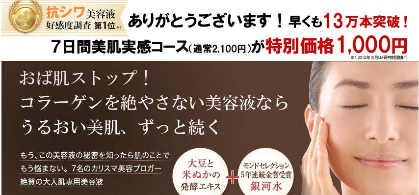 アイムピンチ~高い潤い成分 アイムピンチ 2013年05月09日 抗シワ美容液という事で好感度調査で一位を獲得したり、去年のモンドセレクションでは最高金賞を受賞したりと話題になっている小じわなどに抜群の威力を発揮するという美容液『アイムピンチ』をご存知ですか?歳を重ねるに連れて減少していく体内のコラーゲン。その潤い不足から来るシミやシワなどのお肌のトラブル。。それらを『ヒアルロン酸の2倍以上』の保湿効果を持っている『セラビオ』という成分で補う事が出来ちゃう訳だそうです!この気になる「セラビオ」という成分は米ぬかと大豆を納豆菌で発行させたいわば天然素材を使用した安心安全なモノ!保水力が高いだけでは無くこの発酵成分はお肌自らがコラーゲンを作り出せるよう働きかける機能も有しているので失われた肌機能の回復も期待出来る訳なのです!シワに対する有効な美容液として今注目されているこの『アイムピンチ』はおススメです~! 詳しくは下記より PR